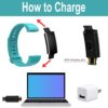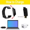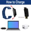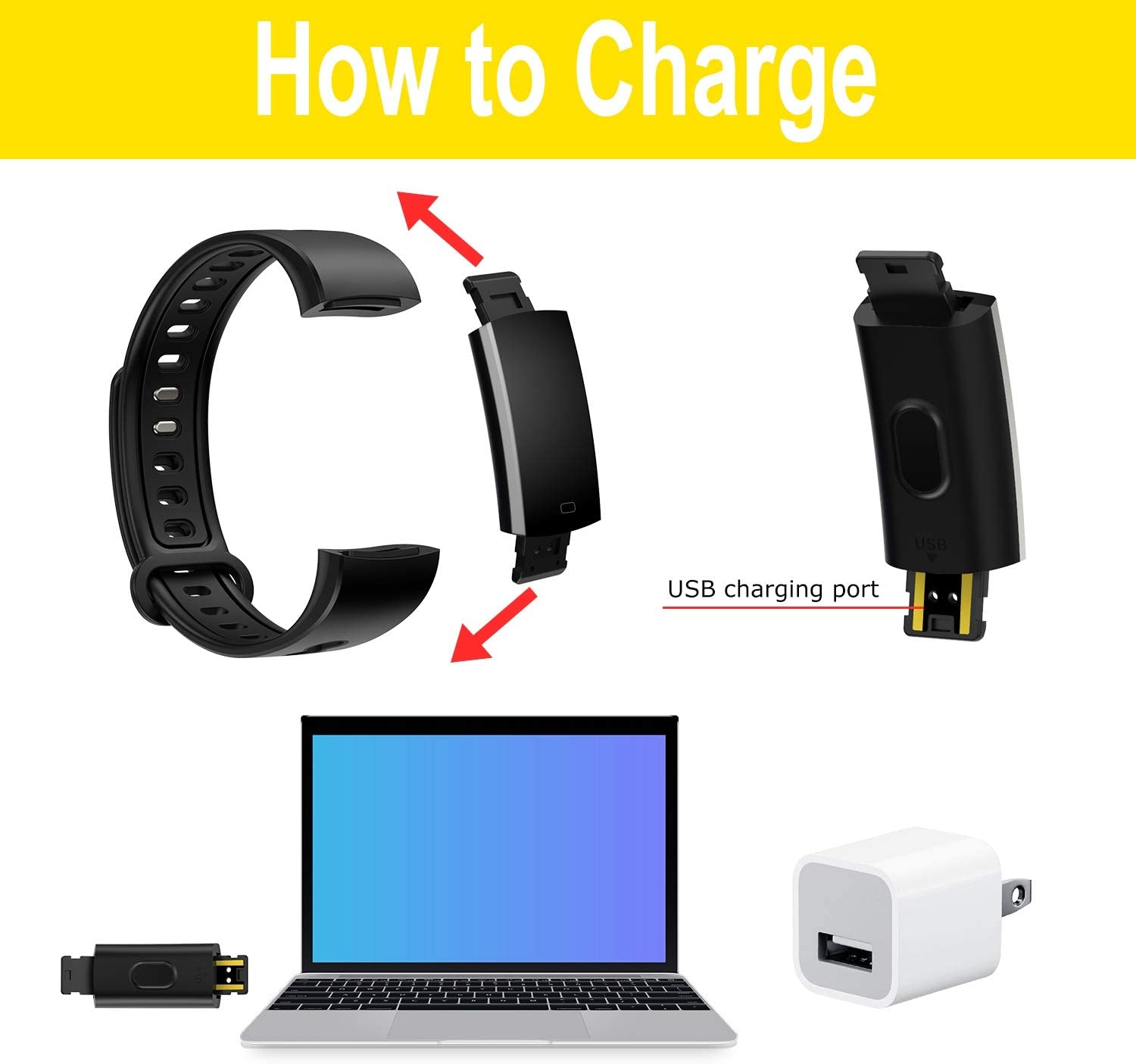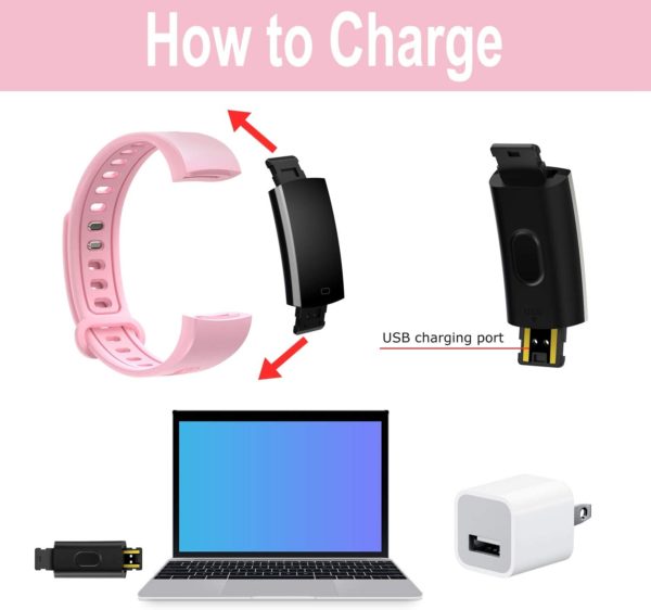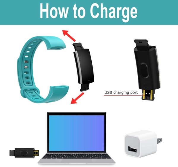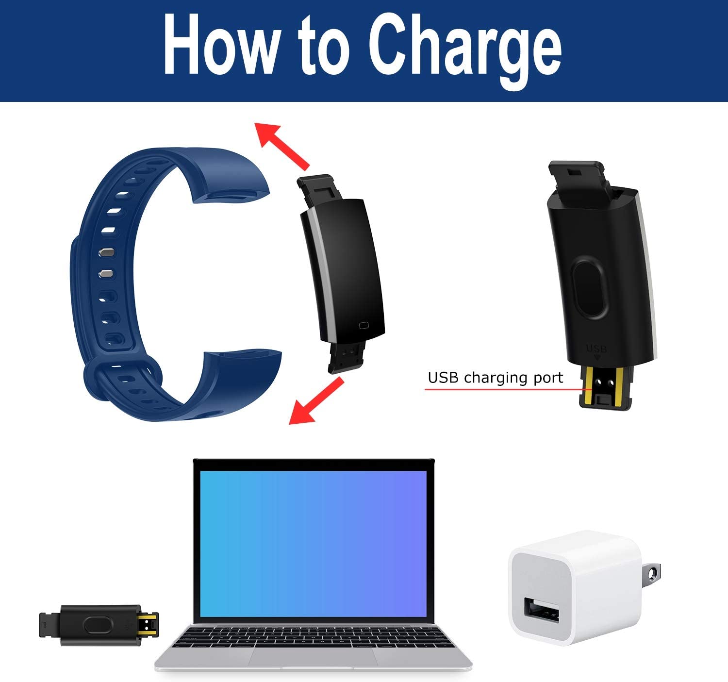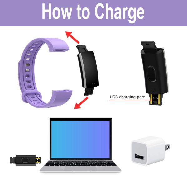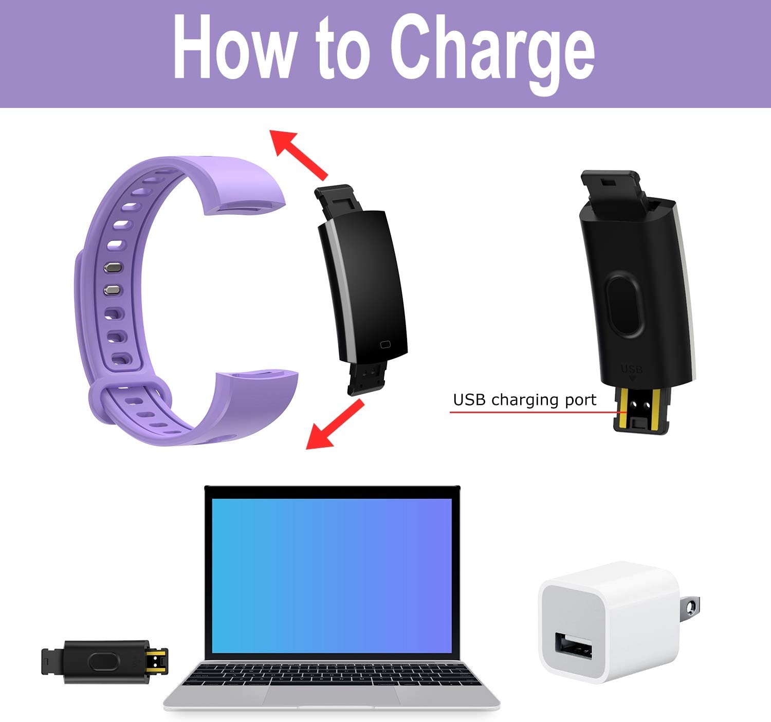 24. A This is no need for a charger.Here are some tips for charging:1. Please remove both two sides of the band from the host, and you will see the metal pins, please plug this side into the USB port. (the metal pins of tracker should be in contact with the pins of USB charger).2. If the watch screen charging icon is not on when inserting the device for charging, please check and turn the direction of the device's charging plug to the correct way, or try other sockets.Warm tips: In order to get a longer lifespan, we recommend you pull out the host from the socket at once after fully charged. It takes about 1~2 hours to get the host fully charged.