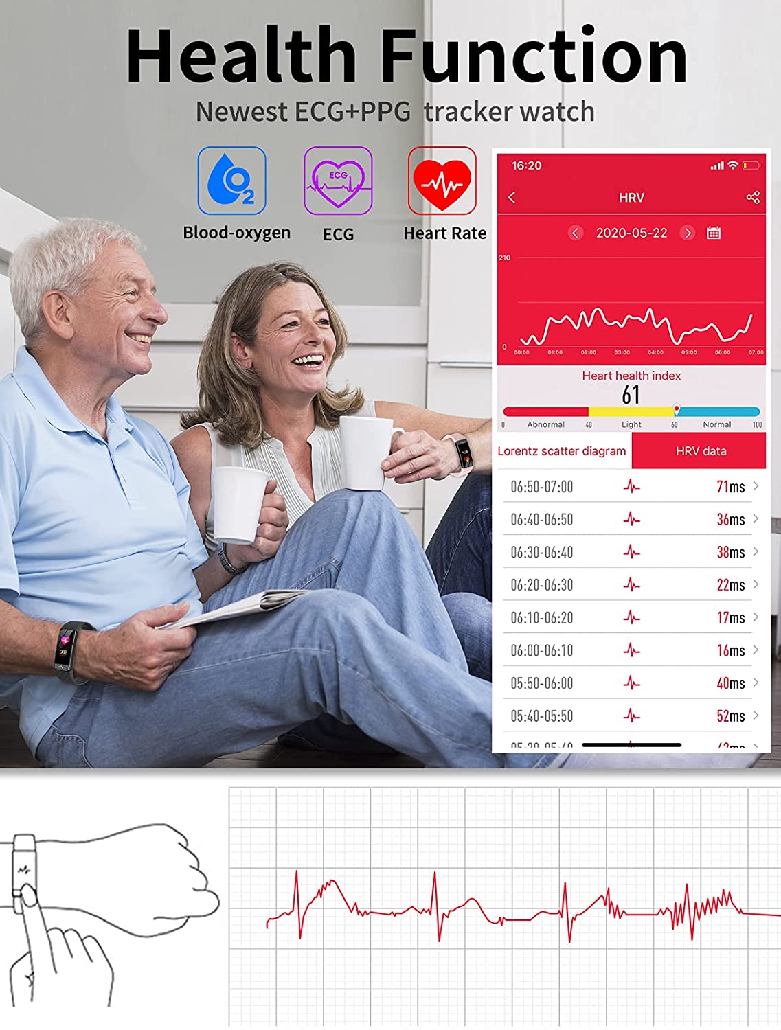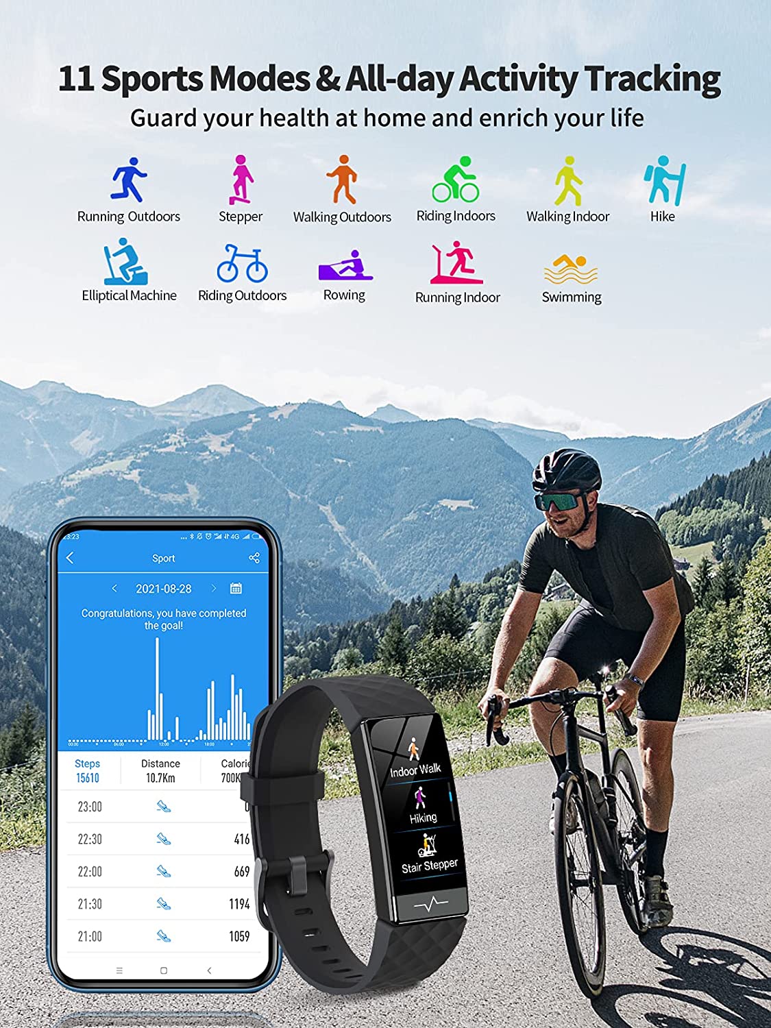 • QOOGOT Fitness Tracker, Activity Tracker with Blood Oxygen SpO2 Heart Rate Sleep Monitor for Men Women,Waterproof Health Watch with HRV Pedometer Calorie Counter Compatible with Android iPhone